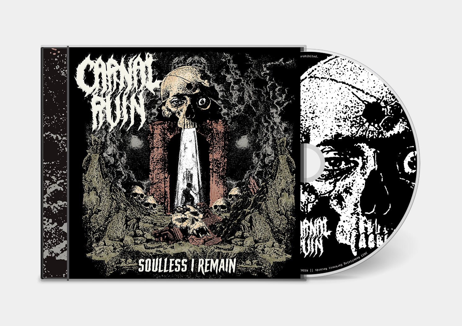 While that EP was a good precursor of what was to come, the band’s first full length LP, Soulless I Remain, is a monster of a record that sees the band mature and really come into their own. Always drawing on their hometown roots, Soulless I Remain is an amalgamation of the Tampa death metal sound with additional influences ranging from Entombed, Grave, Unleashed, Bolt Thrower, Napalm Death, and more. This release brings in some early MeloDeath influence that creates an overall mood of melancholy and despair which certainly set Carnal Ruin apart from the extremely popular ‘Primitive Death Metal’ movement in the U.S. CARNAL RUIN is: Tony Capodilupo: Guitar/Vocals Vince Dibona: Guitar Jared Austin: Bass Austin Good: Drums Recorded and mixed by Ethan Murphy at Back Forty Recordings in Dade City, Florida. Mastered by Dan Swanö at Unisound. Synth on “The Evening Redness in the West” provided by Isthmus ov Styx. Additional vocals on “Soulless I Remain” and “Mortal Decay” by Jamie Stewart (The Absence / Disevered / Hot Graves).