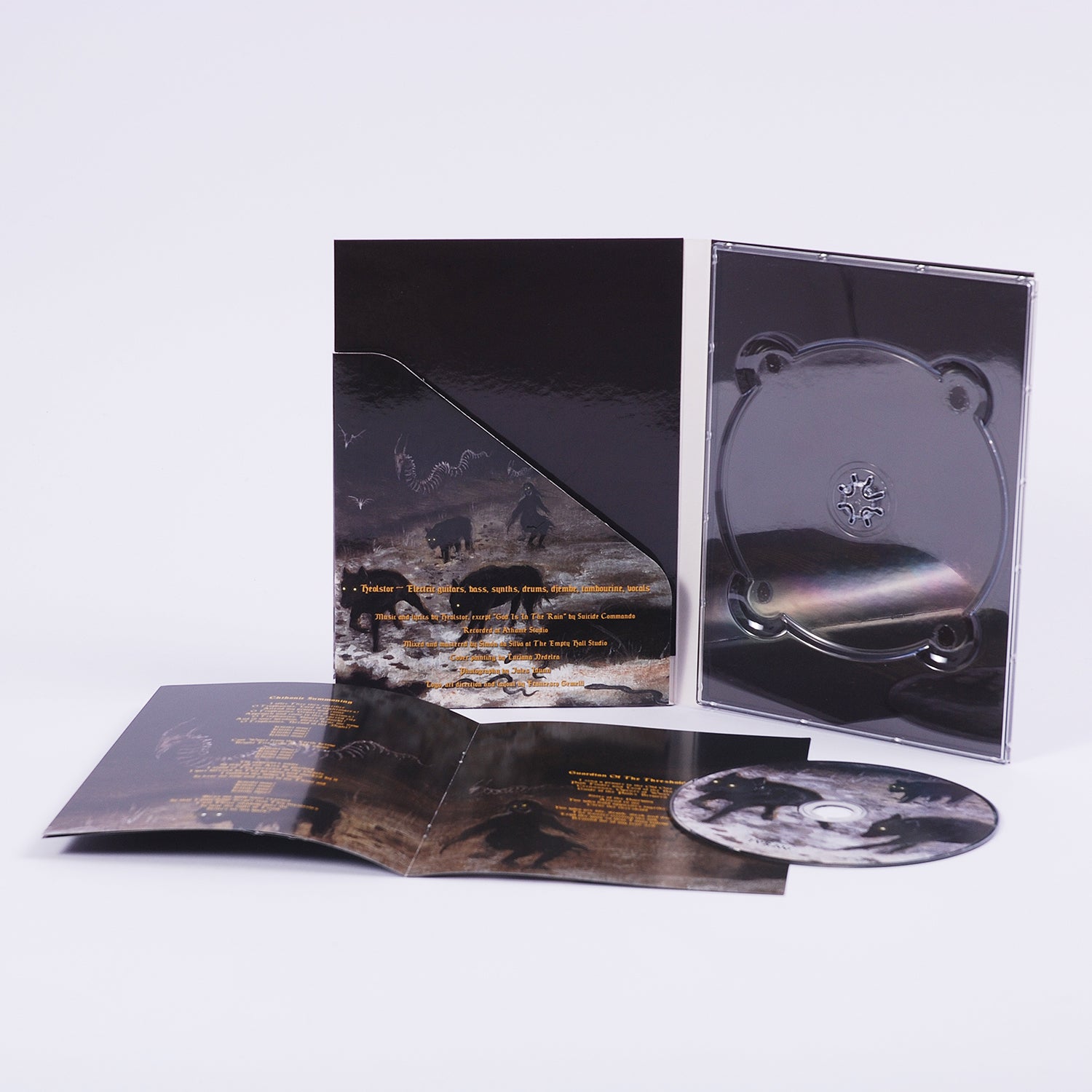 Already the only member of MYSTAGOS, Heolstor returns with his other band, AT THE ALTAR OF THE HORNED GOD, an atypical and original project in which the Spanish musician has successfully harnessed the ritual metal of URFAUST and the Pan-centric black metal of ARCKANUM in a unique and unmistakable style. Rich in psychedelic and dark ambient/folk echoes in the manner of DEAD CAN DANCE, the music of “Heart Of Silence” continues in the atmospheric groove traced by the previous work (“Through Doors Of Moonlight”, 2020), but with greater emphasis on the black metal component and dark melodies that wrap the songs in a cosmic shroud of stars.